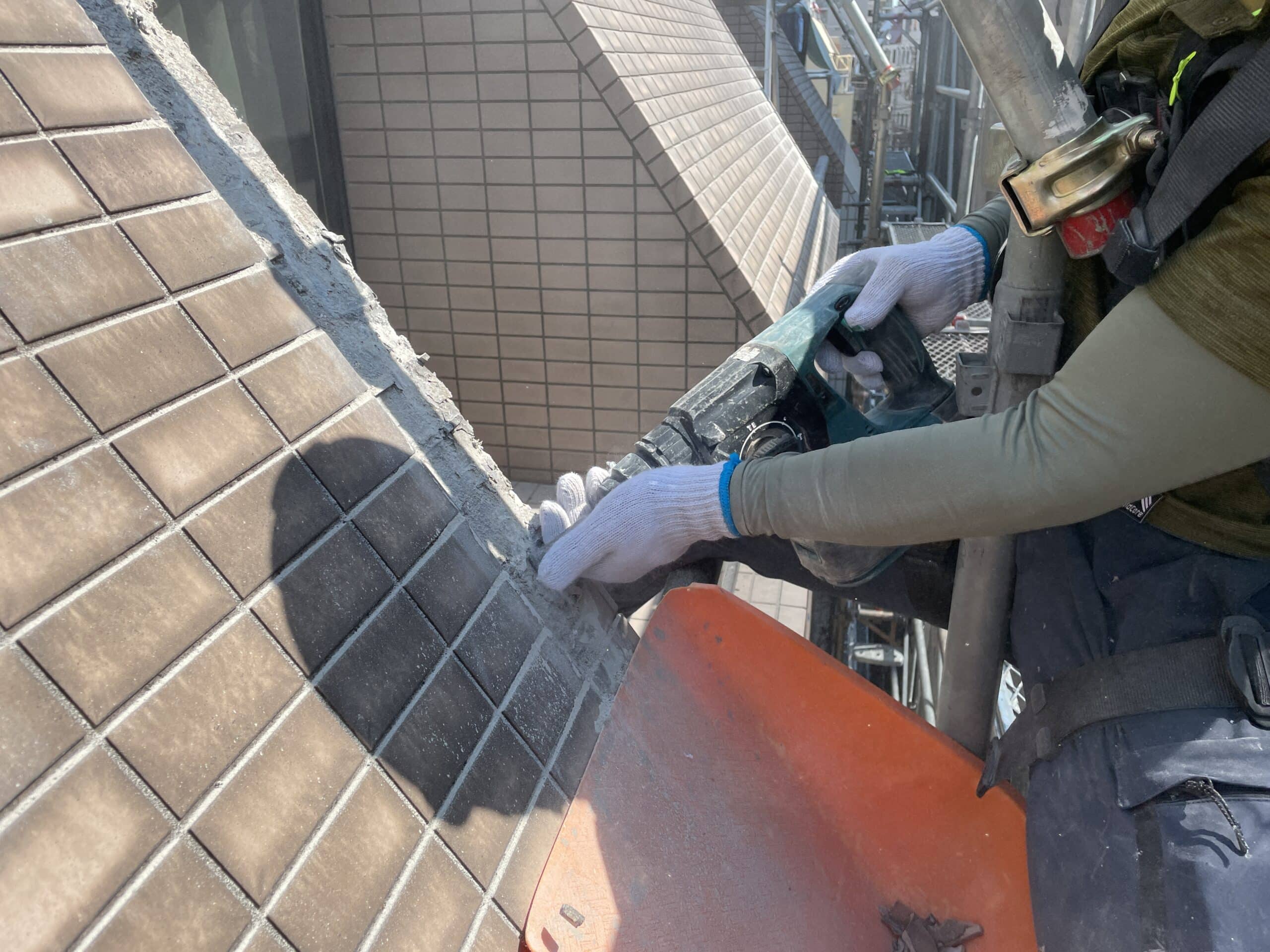 外壁の痛み(クラックや鉄筋錆びて壁を破壊してしまう爆裂現象)が非常に進行していましたので丁寧に下地補修工事をしてから上塗り塗装をほどこしました。
